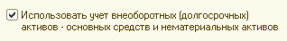 Параметр "Использовать учет внеоборотных (долгосрочных) активов - основных средств и нематериальных активов" определяет возможность ведения учета внеоборотных активов. Этот параметр находится в разделе конфигурации "Сервис и администрирование" / Панель действий / Группа команд "Настройка параметров" / Команда "Настройка параметров учета" / Раздел "Прочие разделы". При первом запуске программы возможность ведения учета внеоборотных активов выключена. Для использования данной возможности необходимо установить в настройках параметров учета соответствующий флажок.
