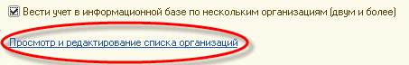 В случае, когда учет ведется по нескольким организациям, то гиперссылка имеет наименование "Просмотр и редактирование списка организаций".