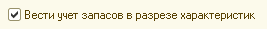 Как включить возможность ведения учета запасов в разрезе характеристик?