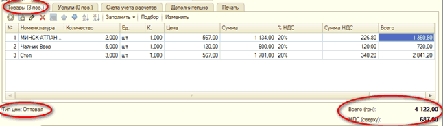 Рис.2 Табличная часть товарного документа