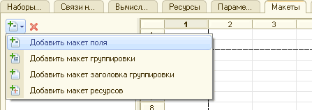 Для того чтобы переопределить расшифровку для поля Номер, добавим для этого поля макет. В конструкторе схемы компоновки данных это делается на закладке "Макеты".
