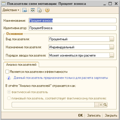 Порядок ввода показателя «Периодически» позволяет устанавливать значение показателя схемы мотивации в целом по организации или по подразделению с определенной периодичностью. Если же такая периодичность не нужна, то следует выбрать порядок ввода показателя «Может изменяться при расчете».