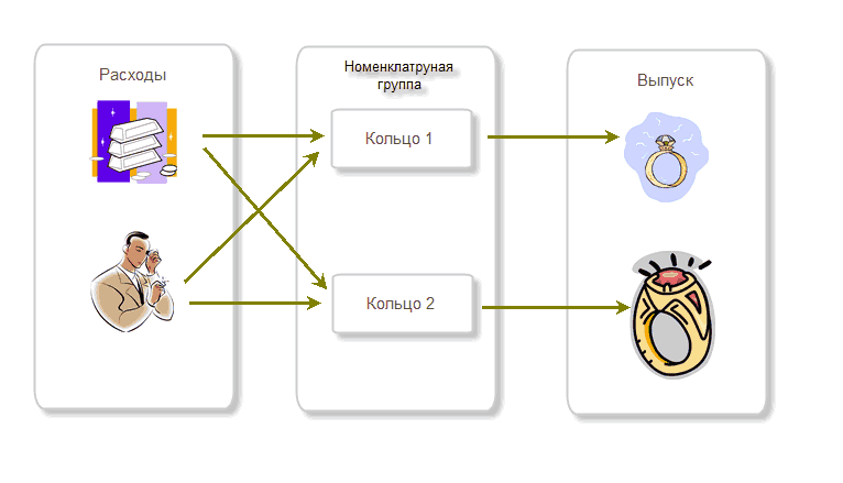 Аналитическому учету по номенклатурным группам могут быть сопоставлены заказы на производство в тех случаях, когда производственным заказом определяются все учетные характеристики выпуска и производство не предполагает проведение нескольких промежуточных этапов - выпуск полуфабрикатов. Подробнее см. в разделеУчет затрат по заказам на производство.