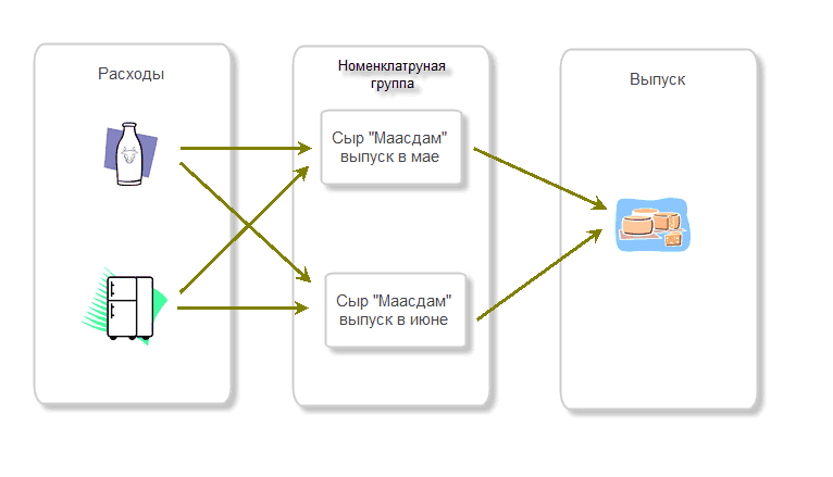 Например, при производстве твердых сыров технологический этап созревания сыра занимает от 1.5 до 2.5 месяцев. В справочнике "Номенклатурные группы" можно создать группу "Сыр Маасдам" с элементами "Сыр Маасдам - выпуск в мае", "Сыр Маасдам - выпуск в июне" и т.д. Этап созревания может быть обозначен выбором специального подразделения, осуществляющего хранение созревающего сыра и уход за ним. Тогда затраты на выпуск сыра в мае, будут признаны в апреле, включены в незавершенное производство на конец апреля в полном объеме, и целиком отнесены на себестоимость сыра, созревшего в мае. В таком случае не понадобится ввод документа "Инвентаризация НЗП".