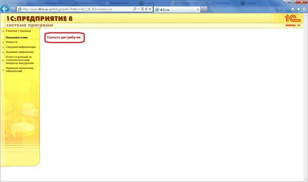 Если все же у Вас нет в наличии дистрибутива, но при этом есть подписка на информационно-технологическое сопровождение (ИТС) от 1С, вы без особого труда можете скачать все необходимые файлы с диска ИТС, или же непосредственно с сайта 1С users.v8.1c.ru.