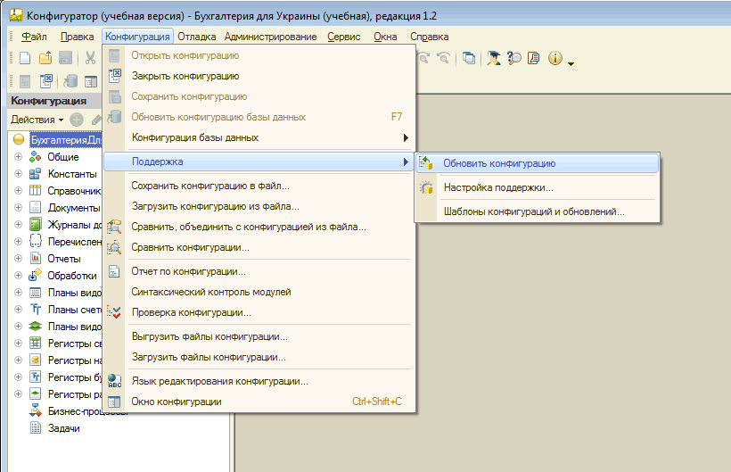 Нажимаем "Конфигурация - поддержка - обновить конфигурацию"