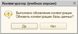 И принимаем обновление конфигурации базы данных.