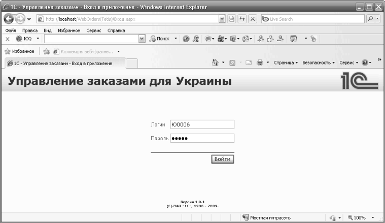 Введенные имя и пароль используются веб-приложением для установки COM-подключения к информационной базе «1С: Предприятия». Если попытка подключения завершается неудачей (то есть, если клиент с переданными «1С: Предприятию» именем и паролем не зарегистрирован в информационной базе), клиенту отправляется страница с сообщением об ошибке авторизации, и сеанс работы прекращается; в противном случае (COM-соединение с ИБ установлено) клиенту передаются данные запрошенной им страницы («default.aspx», если страница не указана явно).