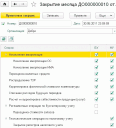 Большая часть операций завершения периода выполняется документом "Закрытие месяца" (меню "Операции"